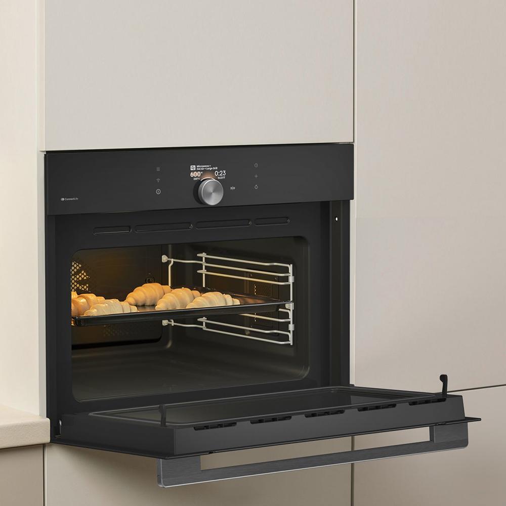 Fjernbetjening, opskrifter, mobilnotifikationer og supportsystemer er funktioner, der hjælper dig med at administrere alle ovnens funktioner mere gnidningsfrit og hurtigere, uanset hvor du befinder dig. Hold altid din ovn opdateret – når nye opdateringer er tilgængelige, kan du downloade dem og opdatere ovnen med de nyeste tilberedningsindstillinger.