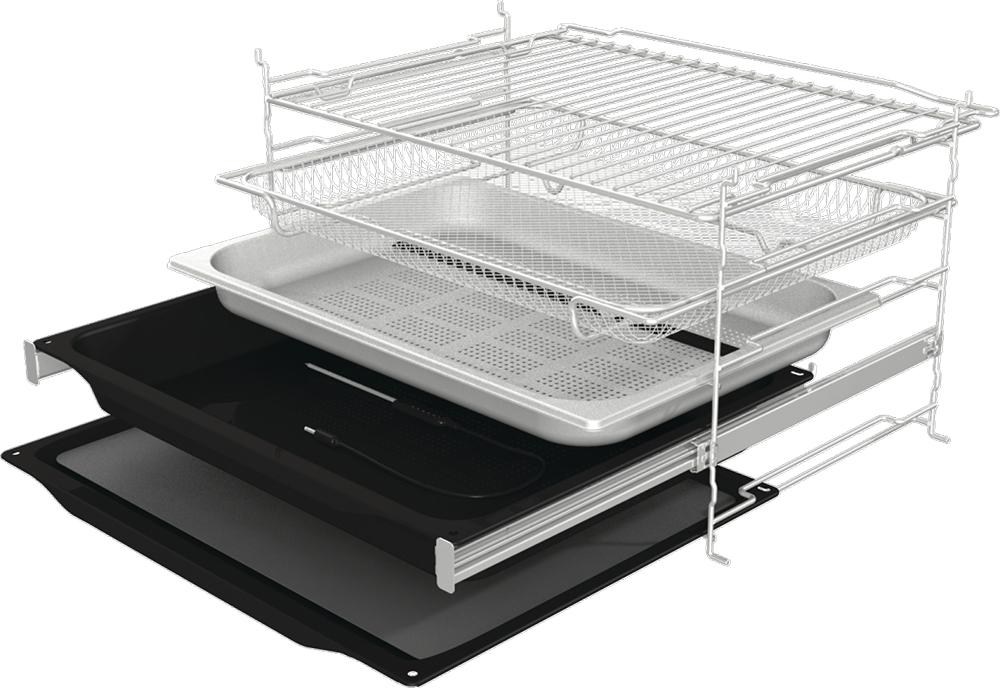 Nyd sprøde og velsmagende friturelignende retter uden de ekstra kalorier! Denne intensive varmluftsbagningsmetode skaber en perfekt sprød, gylden skorpe uden tilsætning af fedt. Ved brug af en speciel bageplade med net opnår du endnu bedre resultater. Perfekt til små stykker kød, fisk, grøntsager og frosne produkter som pommes frites og kyllingenuggets.